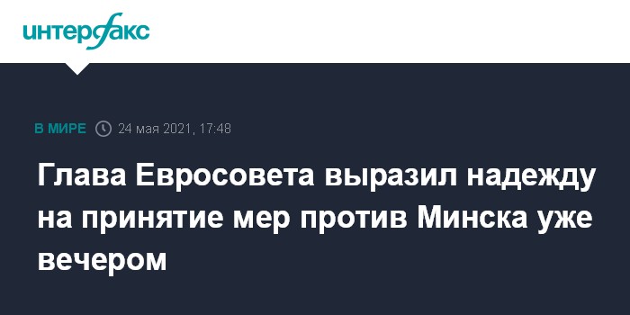 Москва. 24 мая. INTERFAX.RU - Евросоюз уже в понедельник вечером может принять меры против Белоруссии в ответ на инцидент с посадкой самолета Ryanair в Минске, заявил журналистам глава Евросовета Шарль Мишель.