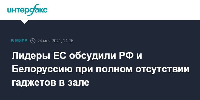 Москва. 24 мая. INTERFAX.RU - Председатель Европейского совета Шарль Мишель распорядился, чтобы часть повестки открывшегося в Брюсселе в понедельник саммита ЕС, посвященная Белоруссии и России, прошла при полном отсутствии в зале заседаний мобильных телефонов, планшетов и иных электронных устройств.