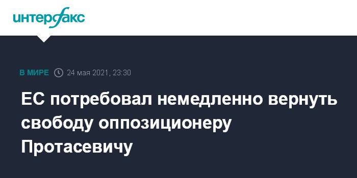 Москва. 24 мая. INTERFAX.RU - Лидеры стран ЕС требуют незамедлительно освободить белорусского оппозиционного активиста и блогера Романа Протасевича, а также его подругу, гражданку России Софию Сапегу.