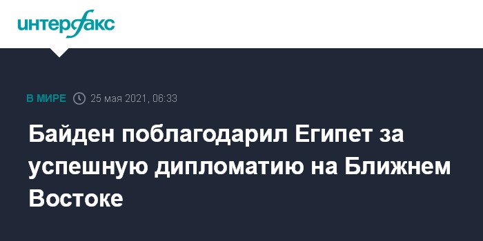 Москва. 25 мая. INTERFAX.RU - Президент США Джо Байден в ходе телефонного разговора с египетским лидером Абделем Фаттахом ас Сиси поблагодарил его за содействие в достижении соглашения о прекращении огня между Израилем и сектором Газа.