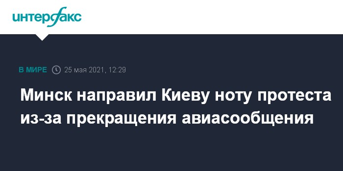 В ноте также отмечено, что Минск рассчитывает, что "возмутительное решение Украины по авиационной блокаде" Белоруссии, "целью которой является нанесение экономического ущерба авиационной отрасли" страны, "будет в самое ближайшее время отменено с учетом объективного рассмотрения всех обстоятельств посадки 23 мая в аэропорту Минска самолета авиакомпании Ryanair. В посольстве добавили, что посадка лайнера была произведена экипажем воздушного судна "в полном соответствии с международными правилами и стандартами в сфере авиационной безопасности".