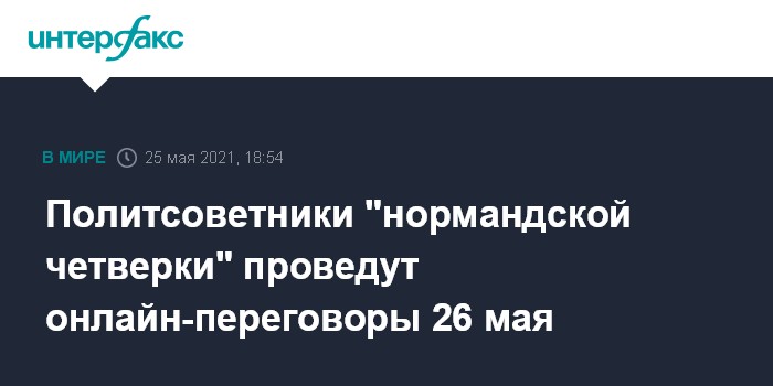 Москва. 25 мая. INTERFAX.RU - Переговоры политсоветников лидеров стран "нормандской четверки" запланированы на 26 мая. Об этом сообщил во вторник "Интерфаксу" источник в российской делегации.