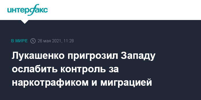 Москва. 26 мая. INTERFAX.RU - Президент Белоруссии Александр Лукашенко заявил, что теперь западные страны будут самостоятельно осуществлять контроль за наркотрафиком и незаконной миграцией на границе с Белоруссией.