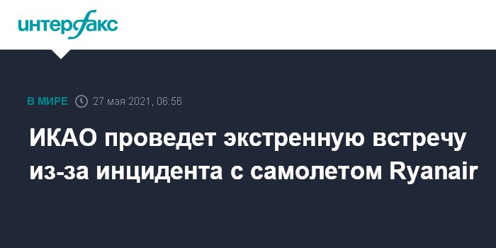 Москва. 27 мая. INTERFAX.RU - Международная организация гражданской авиации (ИКАО), входящая в ООН, как ожидается, в четверг проведет экстренную встречу в связи с инцидентом с посадкой самолета авиакомпании Ryanair в Белоруссии.