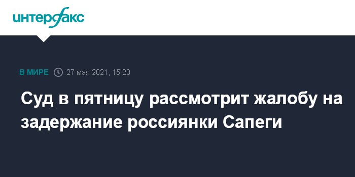 Суд в пятницу рассмотрит жалобу на задержание россиянки Сапеги