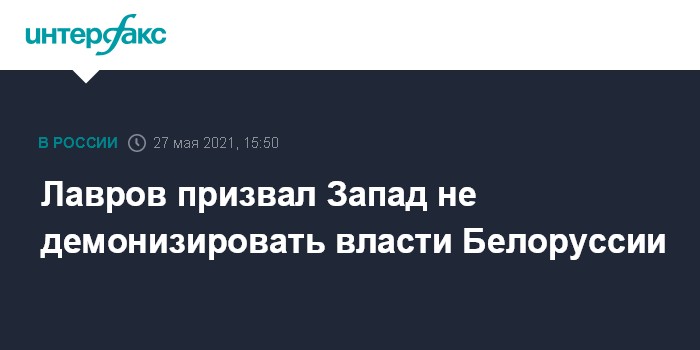 Москва. 27 мая. INTERFAX.RU - Глава МИД РФ Сергей Лавров призвал страны Запада отказаться от попыток демонизации нынешнего руководства Белоруссии.