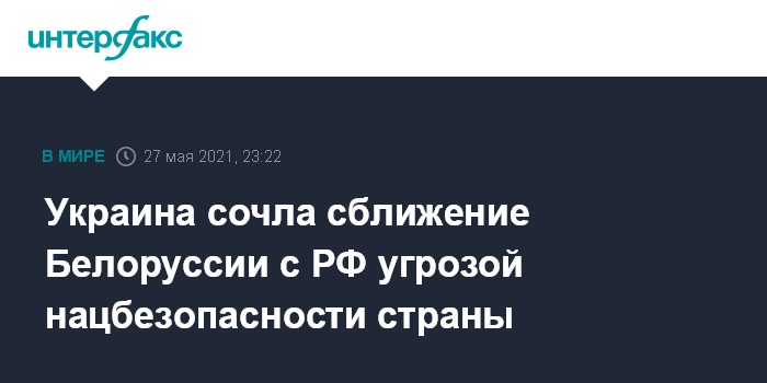 Украина сочла сближение Белоруссии с РФ угрозой нацбезопасности страны
