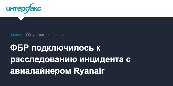 ФБР подключилось к расследованию инцидента с авиалайнером Ryanair
