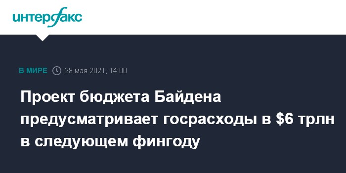 Москва. 28 мая. INTERFAX.RU - Президент США Джо Байден намерен в пятницу представить проект бюджета, предусматривающий увеличение государственных расходов до $6 трлн в следующем финансовом году, стартующем 1 октября, пишет газета The Wall Street Journal.