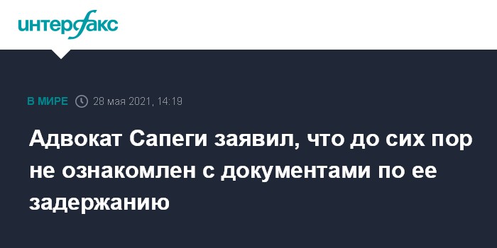 Москва. 28 мая. INTERFAX.RU - Александр Филанович, адвокат россиянки Софьи Сапеги, заявил агентству "Интерфакс", что до сих пор не ознакомлен с документами по ее задержанию.