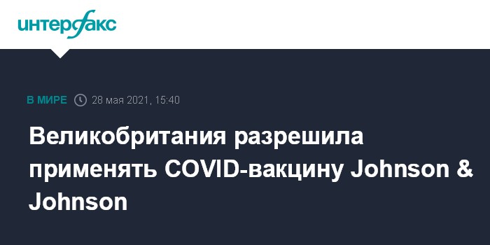 Москва. 28 мая. INTERFAX.RU - Британский регулятор лекарственных средств в пятницу одобрил применение вакцины от коронавируса COVID-19, разработанной компанией Johnson & Johnson.