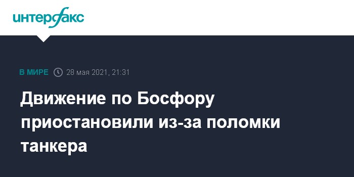 Москва. 28 мая. INTERFAX.RU - Движение судов через пролив Босфор приостановлено из-за нефтяного танкера, на котором возникли технические проблемы, сообщает турецкое издание Sabah.