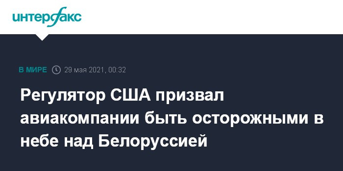 Москва. 29 мая. INTERFAX.RU - Федеральное управление гражданской авиации (FAA) США в пятницу призвало авиакомпании проявлять крайнюю осторожность при пересечении воздушного пространства Белоруссии.