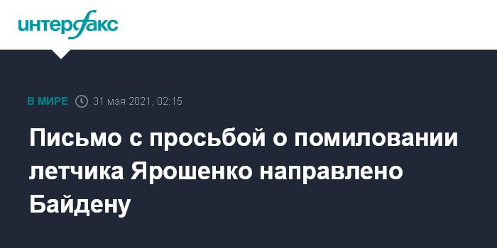 Письмо с просьбой о помиловании летчика Ярошенко направлено Байдену