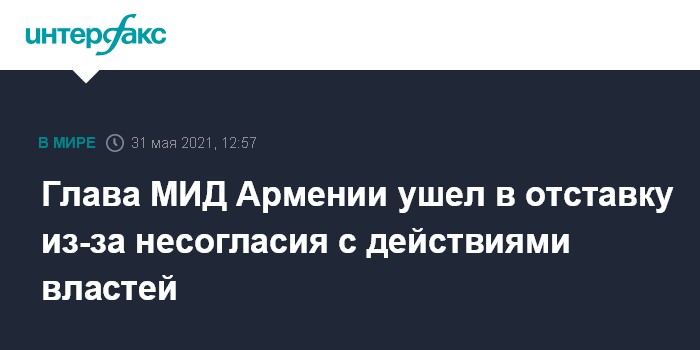 Айвазян, назначенный главой МИД 18 ноября 2020 года, объявил о своей отставке 27 мая. Президент Армении Армен Саркисян пока не подписал соответствующий указ.