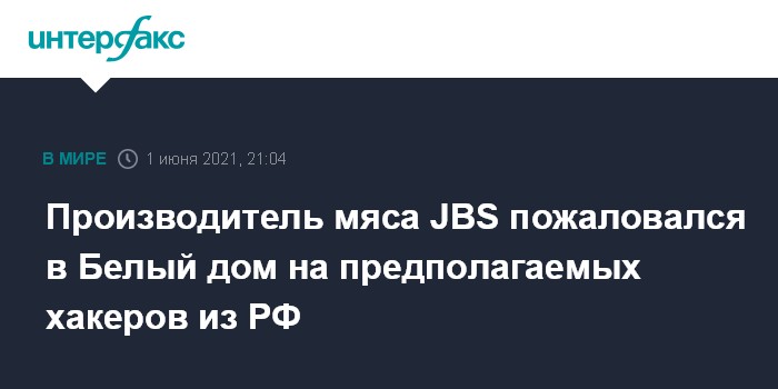 Москва. 1 июня. INTERFAX.RU - Корпорации JBS уведомила администрацию Белого дома о том, что требование выкупа поступило от хакерской группировки, которая, вероятно, сформирована в России.
