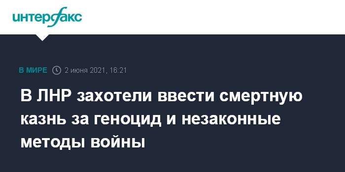 Москва. 2 июня. INTERFAX.RU - Генпрокуратура самопровозглашенной Луганской народной республики обратилась к главе ЛНР и депутатам Народного Совета с просьбой ужесточить наказание за геноцид и использование запрещенных средств ведения войны.