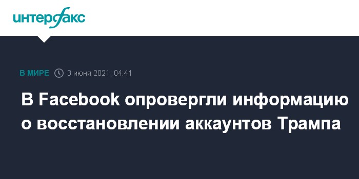 Москва. 3 июня. INTERFAX.RU - Представитель компании Facebook Энди Стоун опроверг появившиеся ранее сообщения о том, что аккаунты бывшего президента США Дональда Трампа в Facebook и Instagram были восстановлены.