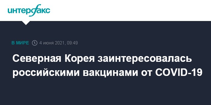 Москва. 4 июня. INTERFAX.RU - Северная Корея проявляет интерес к российским вакцинам от коронавируса, сообщил "Интерфаксу" источник на фармацевтическом рынке РФ.