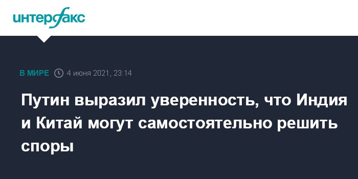 Москва. 4 июня. INTERFAX.RU - Президент РФ Владимир Путин выразил уверенность, что возникающие противоречия между Индией и Китаем удастся разрешить, если им не будут мешать нерегиональные державы.
