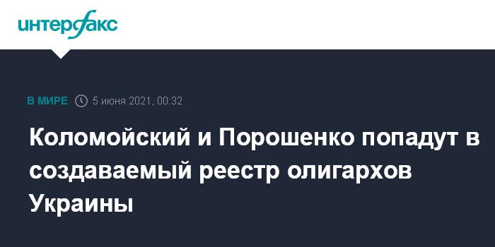 Москва. 5 июня. INTERFAX.RU - Бизнесмен Игорь Коломойский и пятый президент Украины, лидер партии "Европейская солидарность", народный депутат Петр Порошенко соответствуют критериям, по которым они попадают в реестр олигархов, предусмотренный президентским законопроектом о деолигархизации, заявил министр юстиции Украины Денис Малюська.