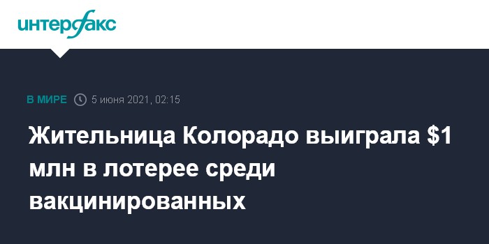 Жительница Колорадо выиграла $1 млн в лотерее среди вакцинированных