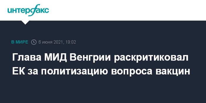 Москва. 6 июня. INTERFAX.RU - Еврокомиссия превращает вакцины в предмет геополитики и идеологии, это большая ошибка, полагает глава МИД Венгрии Петер Сийярто.