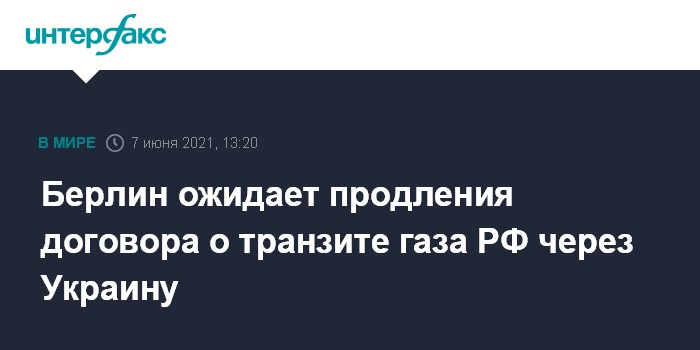 Москва. 7 июня. INTERFAX.RU - Украина должна оставаться транзитной страной для российского газа, Берлин ожидает, что транзитный договор с РФ будет продлен, заявил официальный представитель правительства ФРГ Штеффен Зайберт.