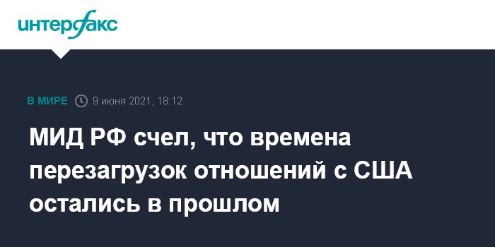 МИД РФ счел, что времена перезагрузок отношений с США остались в прошлом