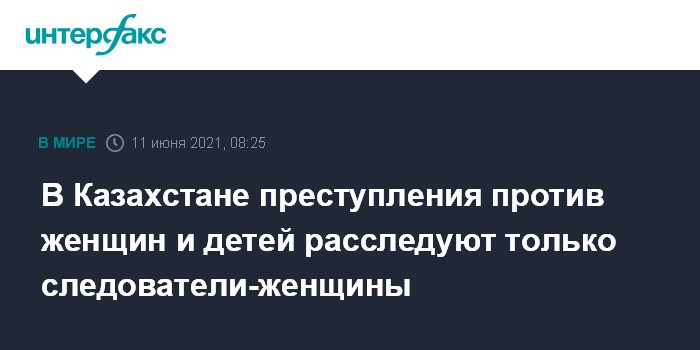 Москва. 11 июня. INTERFAX.RU - В Казахстане с начала текущего года расследованием преступлений против женщин и детей занимаются только следователи-женщины, сообщил глава МВД Ерлан Тургумбаев.
