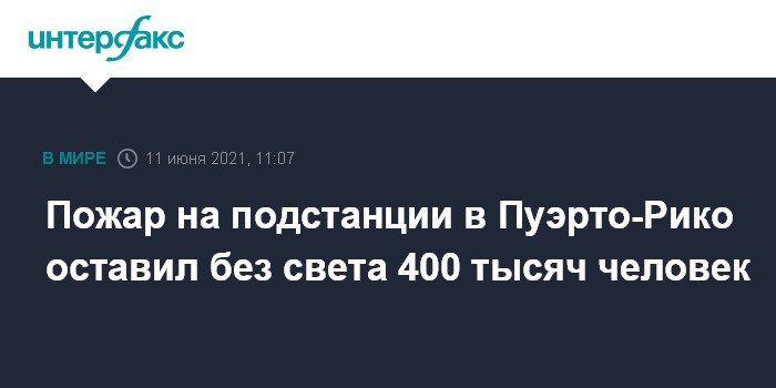 Москва. 11 июня. INTERFAX.RU - Пуэрториканская энергетическая компания Luma Energy сообщила о пожаре на одной из подстанций, что привело в ночь на пятницу к отключению электроэнергии в ряде районов острова.