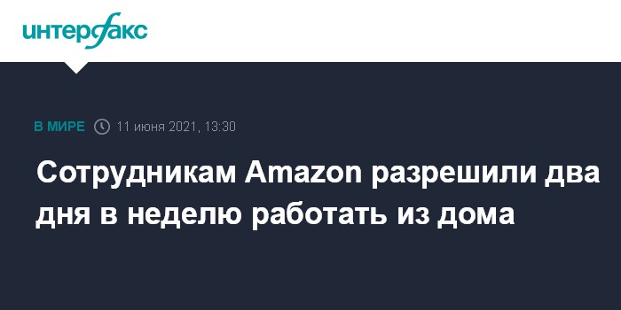 Москва. 11 июня. INTERFAX.RU - Ритейлер Amazon сообщил, что сотрудникам, которые занимают корпоративные и технические должности, будет можно работать дистанционно до двух дней в неделю после отмены коронавирусных ограничений.