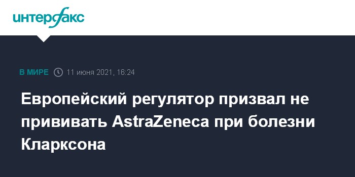 Европейский регулятор призвал не прививать AstraZeneca при болезни Кларксона