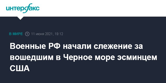 Москва. 11 июня. INTERFAX.RU - В Черное море вошел эсминец ВМС США, за ним следит Черноморский флот России, сообщил в пятницу Национальный центр управления обороной РФ.