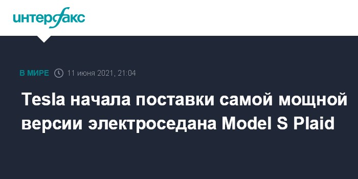 Москва. 11 июня. INTERFAX.RU - Американская Tesla Inc. начала поставки Model S Plaid - самой мощной версии своего флагманского электрического седана.