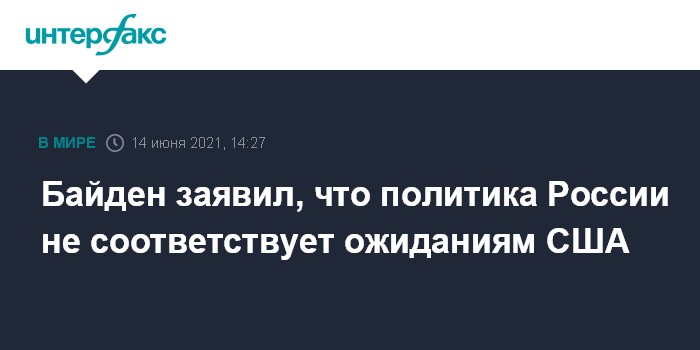 Москва. 14 июня. INTERFAX.RU - РФ ведет политику не в соответствии с ожиданиями США и представляет собой "новый вызов", заявил в понедельник на саммите НАТО американский президент Джо Байден.
