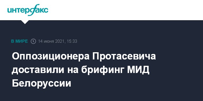Москва. 14 июня. INTERFAX.RU - На брифинге МИД Белоруссии в понедельник для представителей СМИ участвует задержанный 23 мая в Минске оппозиционер Роман Протасевич, сообщает "Интерфакс" в понедельник.