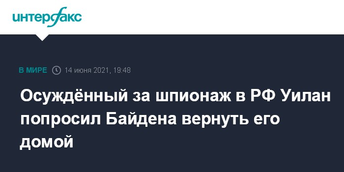 Москва. 14 июня. INTERFAX.RU - Осуждённый в России за шпионаж гражданин США, Великобритании, Канады и Ирландии Пол Уилан обратился к президенту Джо Байдену с просьбой "вернуть его домой".