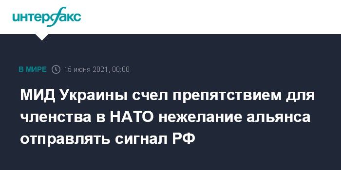 Москва. 14 июня. INTERFAX.RU - Главное препятствие к предоставлению Украине плана действий по членству (ПДЧ) в НАТО именно сейчас - это нежелание отправлять такой сигнал РФ, сообщил министр иностранных дел страны Дмитрий Кулеба.