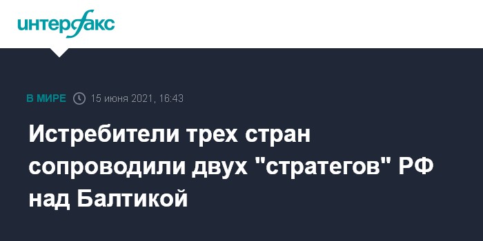 Москва. 15 июня. INTERFAX.RU - Итальянские, датские и шведские истребители поднимались в воздух из-за восьмичасового полета двух российских стратегических бомбардировщиков Ту-160 над Балтийским морем, сообщили в Минобороны РФ.