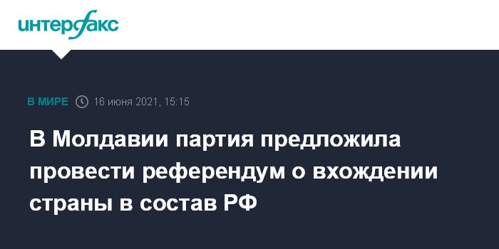 Москва. 16 июня. INTERFAX.RU - Политическая партия "Патриоты Молдовы" выступает с инициативой проведения референдума по вопросу вхождения Молдавии в состав Российской Федерации, сообщил председатель партии Михаил Гарбуз.