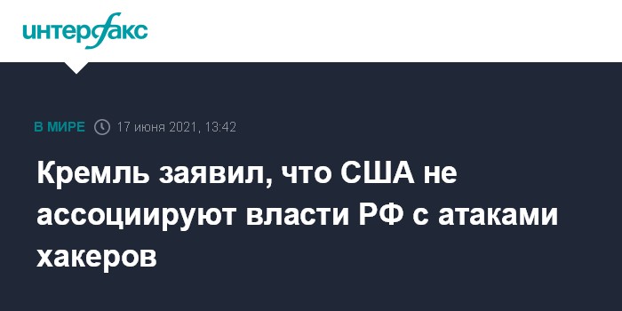 Кремль заявил, что США не ассоциируют власти РФ с атаками хакеров