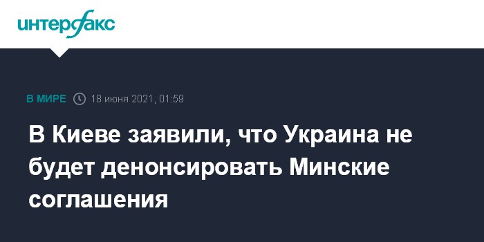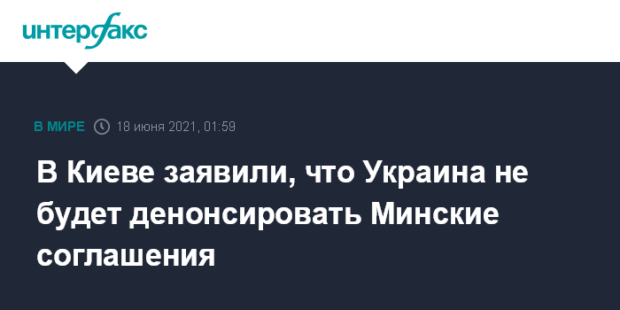 Москва. 18 июня. INTERFAX.RU - Украина не будет отменять Минские соглашения, заявил секретарь Совета национальной безопасности и обороны (СНБО) Алексей Данилов.