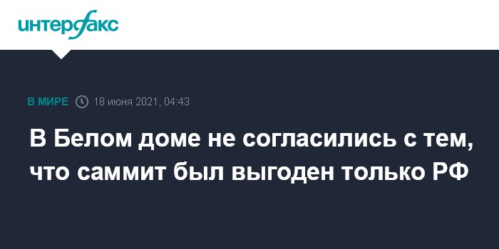Москва. 18 июня. INTERFAX.RU - Советник президента США по национальной безопасности Джейк Салливан высказался против мнения о том, что саммит между президентом США Джо Байденом и российским лидером Владимиром Путиным был выгоден исключительно России.
