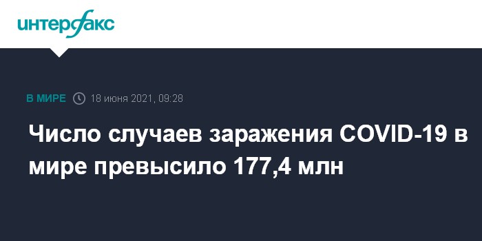 Москва. 18 июня. INTERFAX.RU - Число зарегистрированных случаев заражений коронавирусом в мире на утро пятницы составило 177 435 887, сообщил американский университет Джонса Хопкинса.