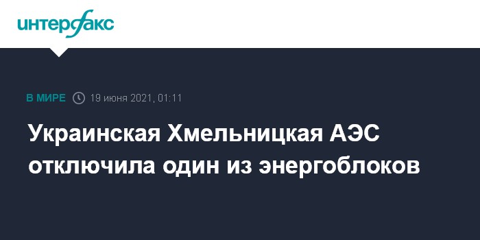 Москва. 19 июня. INTERFAX.RU - Хмельницкая АЭС на Украине в пятницу вечером отключила второй блок от энергосистемы страны из-за отключения двух турбопитательных насосов, происшествие не существенно для безопасности, сообщает информационный центр ХАЭС.