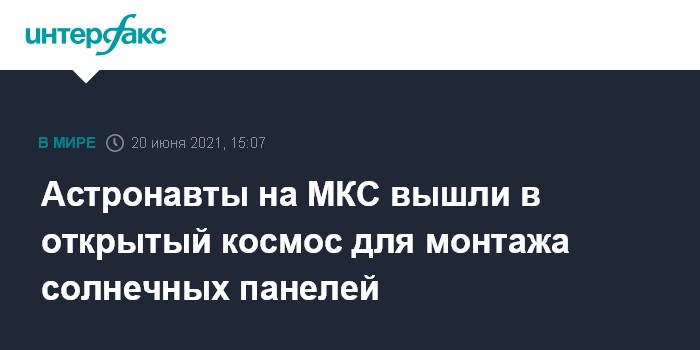 Москва. 20 июня. INTERFAX.RU - Американский и европейский астронавты в воскресенье вышли в открытый космос с борта Международной космической станции (МКС) для продолжения монтажа на ее поверхности новых солнечных панелей, сообщило НАСА.