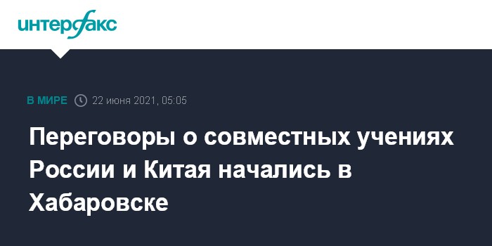 Москва. 22 июня. INTERFAX.RU - Восточный военный округ (ВВО) и народно-освободительная армия Китая (НОАК) начали переговоры о проведении совместных учений "Запад/Взаимодействие - 2021" на территории КНР, сообщает пресс-служба ВВО.