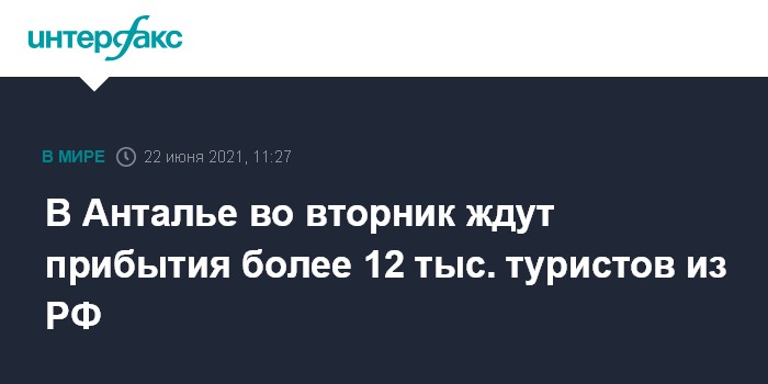 Москва. 22 июня. INTERFAX.RU - В первый день возобновления авиасообщения с Россией в Анталье ожидают более 12 тыс. российских туристов, сообщает телеканал TRT Haber.