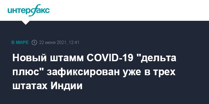 Москва. 22 июня. INTERFAX.RU - Новый вариант штамма COVID-19, который получил название "дельта плюс", обнаружен в трех штатах Индии, сообщило издание Hindustan Times во вторник.